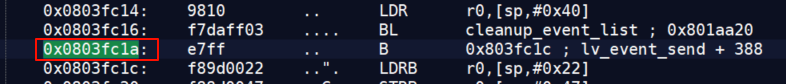 所以我们将LR减1在反汇编文件搜索可以找到它,向上追溯知道它属于一个叫lv_event_send的函数