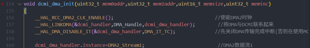 查找到 bsp_camera_if.c (158) 可以看到出问题的是下面的__HAL_DMA_DISABLE_IT(&dcmi_dma_handler,DMA_IT_TC);