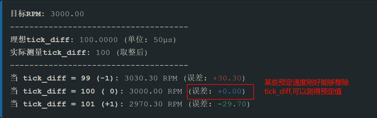 4、由此可得公式RRM = 300000 /tick_diff 同时也可以根据转速推测需要多少个中断次数,也就是 tick_diff = 300000 / RPM
